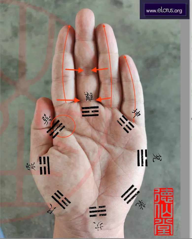 Thankfully, he received timely treatment and escaped life-threatening danger.In fact, TCM palm diagnosis for health is not complicated. Map the palm to the Later Heaven Bagua: the middle finger corresponds to the Li Palace (Heart, eyes, head, etc.). In this boy’s hand, the middle finger was clearly compressed and squeezed by the index and ring fingers, pushed backward in position, with a noticeable depression at the root. The palm lines in the Li area were thick, heavy, and sunken — classic signs of Heart oppression, cardiovascular compression, and myocardial hypoxia. This single feature alone was enough to conclude a severe heart issue, even in a teenager.Additionally, he was in a high-risk period: the Xun Palace showed net-like patterns, a broken love line indicated strong personality and heavy family entanglements with frequent incidents; strong intellect and endurance; tightly closed finger gaps; obvious depression in the Xun Palace (Xun represents Wind and speech) — pointing to family arguments, disputes, and gossip. This time, the diagnosis saved his life, and he was deeply grateful. Soon after, he asked about family matters. Using Wen Wang I Ching hexagrams, I predicted his father would face lawsuits and imprisonment due to money issues — and it came true.Of course, that falls under a separate I Ching-based diagnostic system.